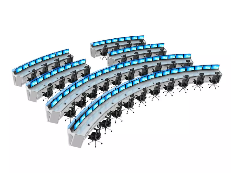 1. 操作を容易にする人間工学に基づいた曲面デザイン:視覚的および操作フローに適合する曲面テーブルトップにより、頻繁に向きを変えることなく複数の画面を簡単に監視できるため、長時間の勤務による首、肩、背中の疲労が大幅に軽減され、監視効率が向上します。